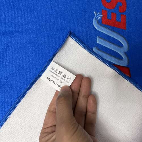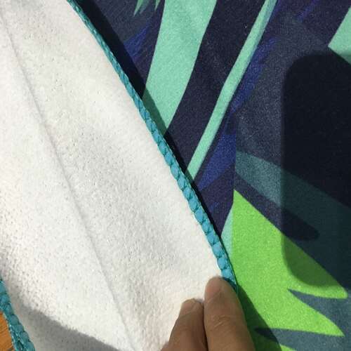 If your budget for beach towels is not high, we recommend you choose the microfiber beach towel, this towel is cheap, and we support customization, printing on the front and white terry on the back.